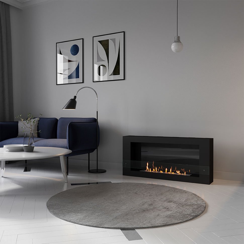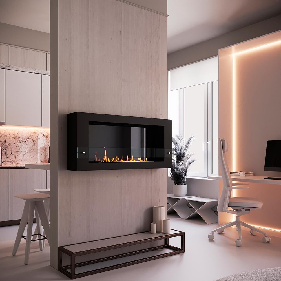 Биокамин SteelHeat WALL LONG 1200 черный, стекло, стемалит