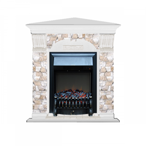 Каминокомплект Glenrich Арочный Арбат угловой (белый)+Fobos Black
