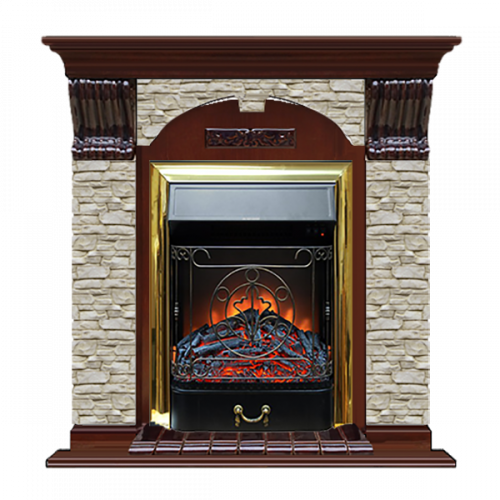 Каминокомплект Glenrich Арочный Грот однотонный (красное дерево)+Majestic Brass