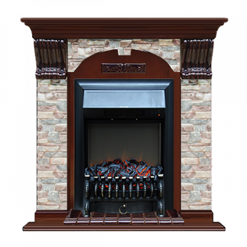 Каминокомплект Glenrich Арочный Грот цветной (красное дерево)+Fobos Black